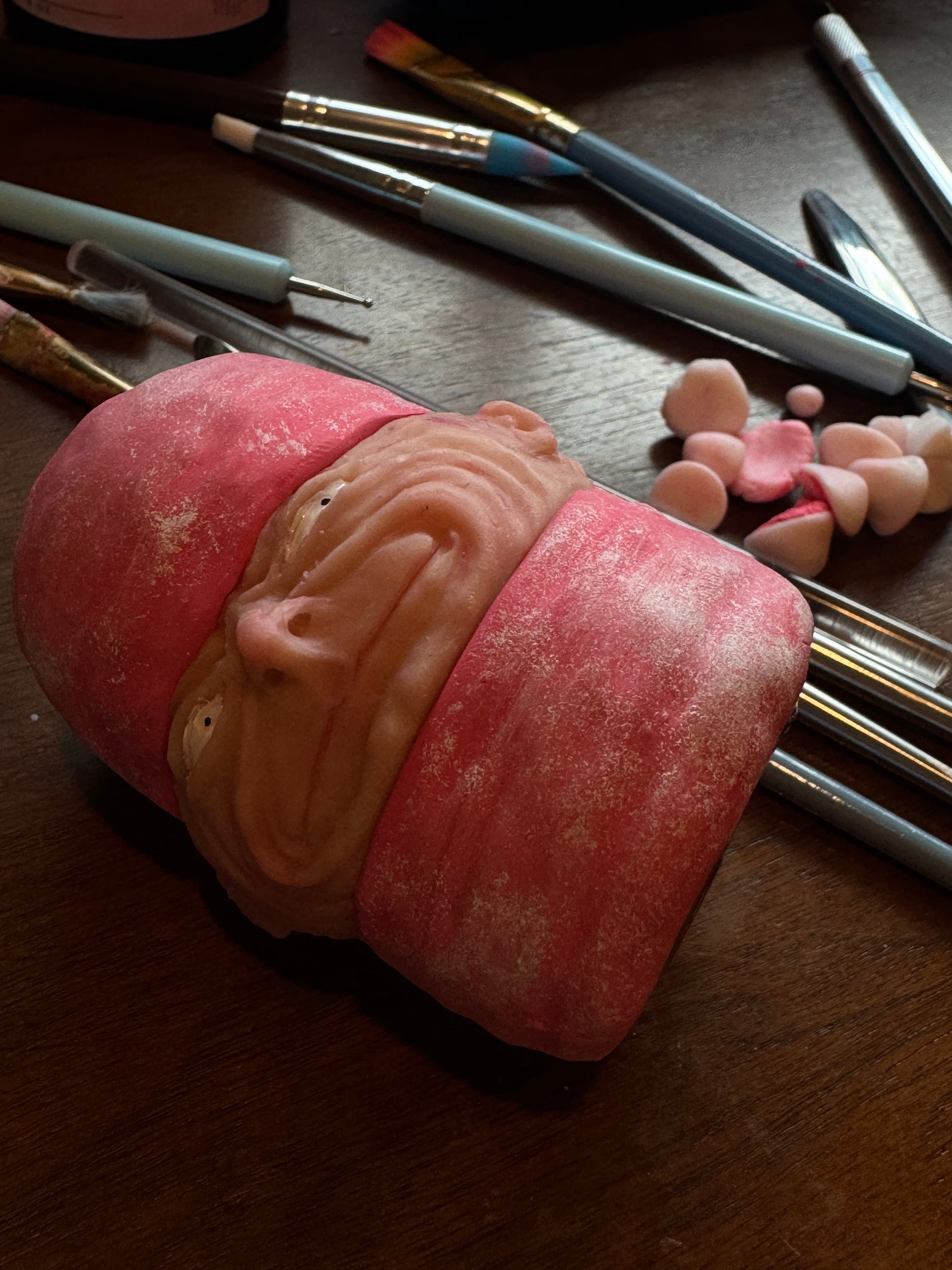Hand made with polymer clay, an old glass bottle, a little paint, a few hours or more, and a lot of love. ❤️